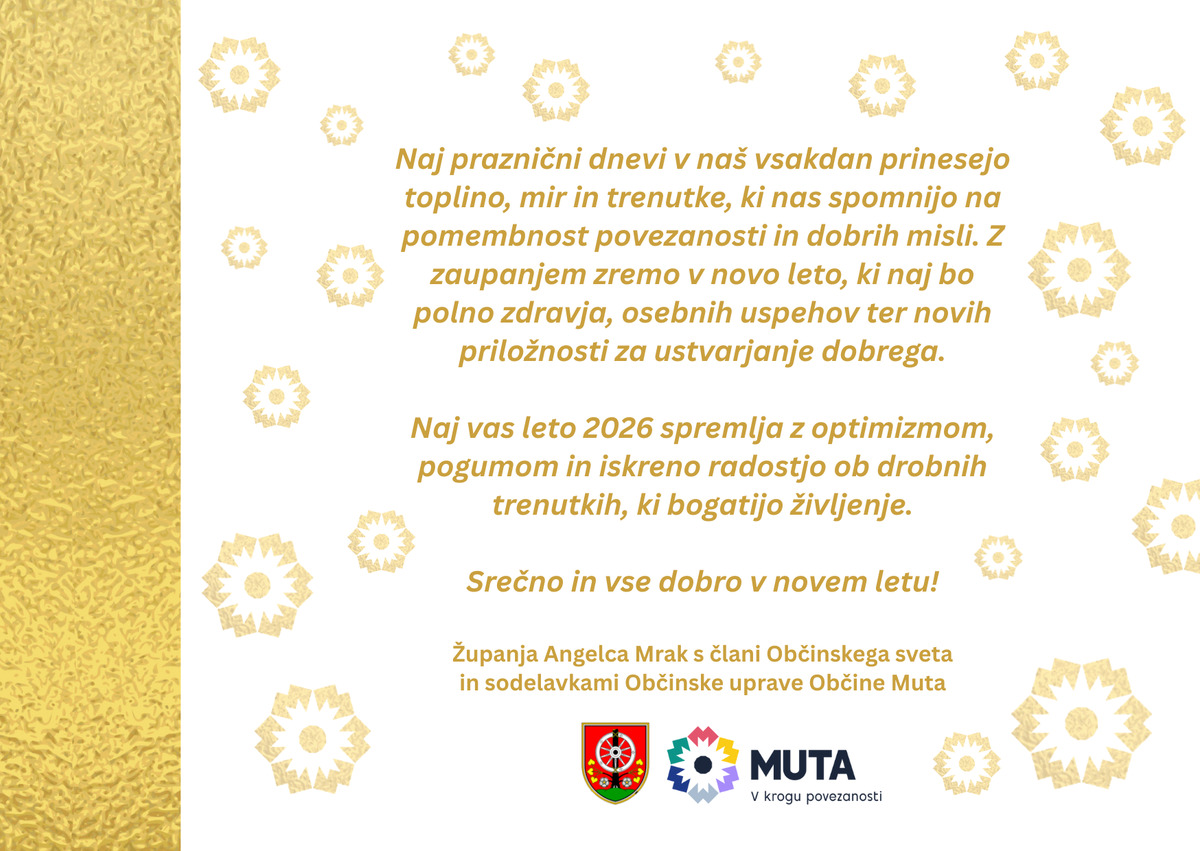 Srečno in vse dobro v novem letu vam želi županja Angelca Mrak s člani Občinskega sveta in sodelavkami Občinske uprave Občine Muta.