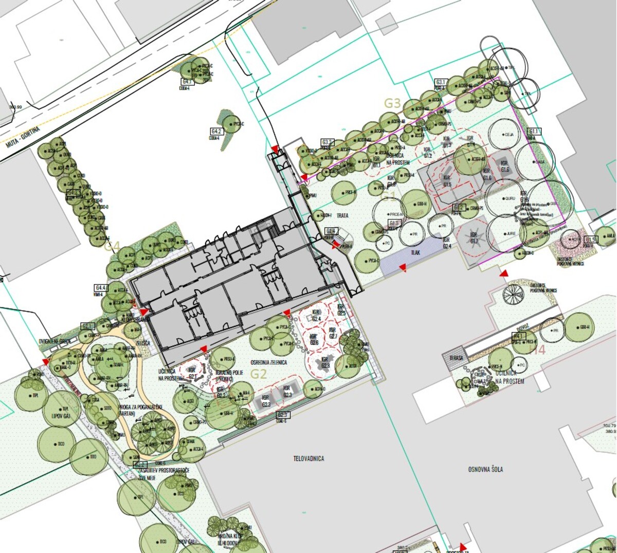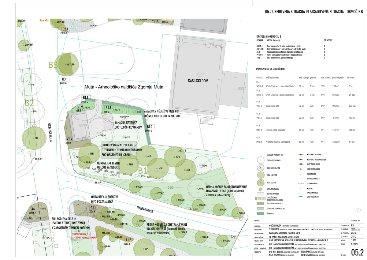 V tem tednu izbran izvajalec del Vrtnarstvo Marolt d.o.o. začenja z deli po projektu Parkovna ureditev Zgornje Mute – DRR Zelena infrastruktura s strokovnim arborističnim pregledom in obrezovanjem obstoječe drevnine, s čimer se zagotavljata varnost ter dolgoročno zdravje dreves. V naslednjih dneh se bodo začela tudi celovita ureditvena dela na območju novega vrtca in osnovne šole (območji G in H), kjer bodo urejene zelene površine, zasajena nova drevesa ter izboljšani pogoji za igro, gibanje in zadrževanje na prostem.