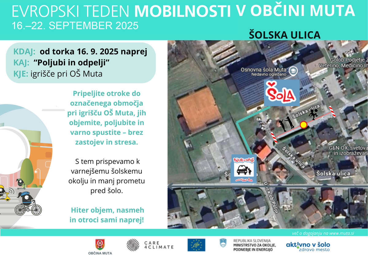 V okviru Evropskega tedna mobilnosti 2025 Občina Muta skupaj z Osnovno šolo Muta in Vrtcem Muta spodbuja trajnostne in varne načine prihodov otrok v šolo in vrtec.