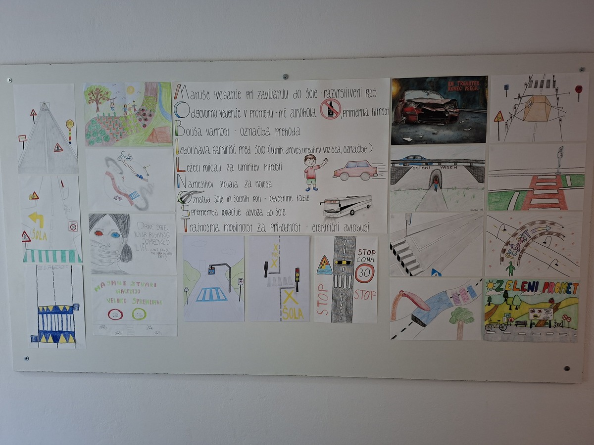 Dijaki so med 16. in 20. septembrom 2025 razmišljali o svojih vsakodnevnih poteh, prometni varnosti in možnostih izboljšanja trajnostne mobilnosti v lokalnem okolju. Skozi vprašanja, pogovore in ustvarjalne delavnice so oblikovali predloge, pobude in ideje, ki so jih izrazili v obliki zapisov, pisem, risb in drugih izdelkov.