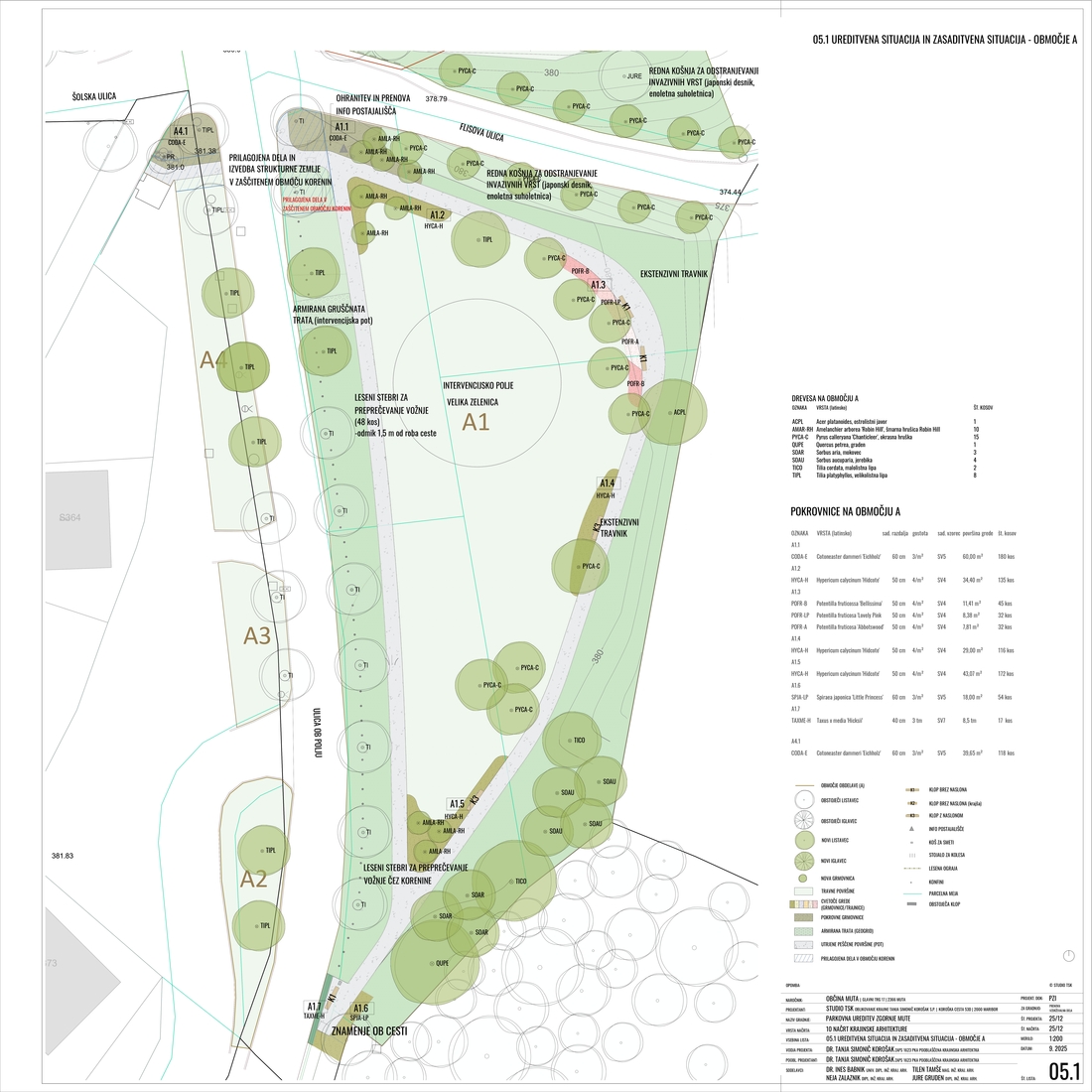 V teh tednih izbran izvajalec del Vrtnarstvo Marolt d.o.o. intenzivno izvaja vsa dela po projektu Parkovna ureditev Zgornje Mute – DRR Zelena infrastruktura. Začelo se je s strokovnim arborističnim pregledom in obrezovanjem obstoječe drevnine, s čimer se zagotavljata varnost ter dolgoročno zdravje dreves. Nadaljujejo se celovita ureditvena dela na vseh območjih vključno z območjem novega vrtca in osnovne šole (območji G in H), kjer bodo urejene zelene površine, zasajena nova drevesa ter izboljšani pogoji za igro, gibanje in zadrževanje na prostem.